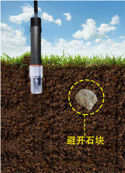 選定合適的測量地點,避開石塊,確保探頭不會碰到堅硬的物體,按照所需測量深度拋開表層土,保持下面土壤原有的松緊程度,緊握傳感器垂直插入土壤,插入時不可左右晃動,一個測點的小范圍內建議多次測量求平均值。