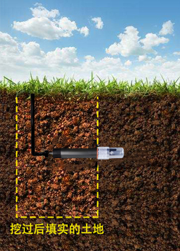 垂直挖直徑>20cm的坑,按照測量需要,在既定的深度將傳感器水平插入坑壁,將坑填埋嚴實,穩定一段時間后,即可進行連續數天,數月乃至更長時間的測量和記錄。