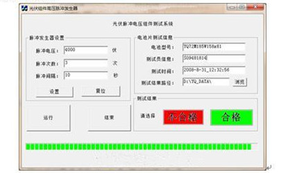 運(yùn)行:脈沖發(fā)生器參數(shù)和電池片信息確定后,點(diǎn)擊運(yùn)行按鈕,開(kāi)始測(cè)試。