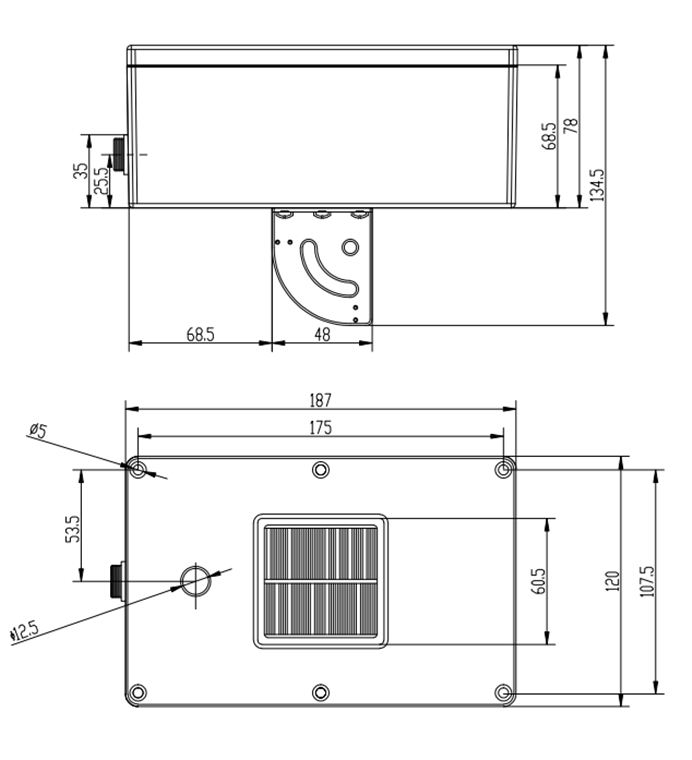 太陽能電池片嵌入在醋酸乙烯酯中,層疊的電池集成到鋁涂層的小盒中。因此傳感器的結構與標準的光伏組件模塊十分相似。線纜的接口是一個IP67 的防水接頭。安裝掛件角度可調,使用時調節到與光伏組件角度一致即可。