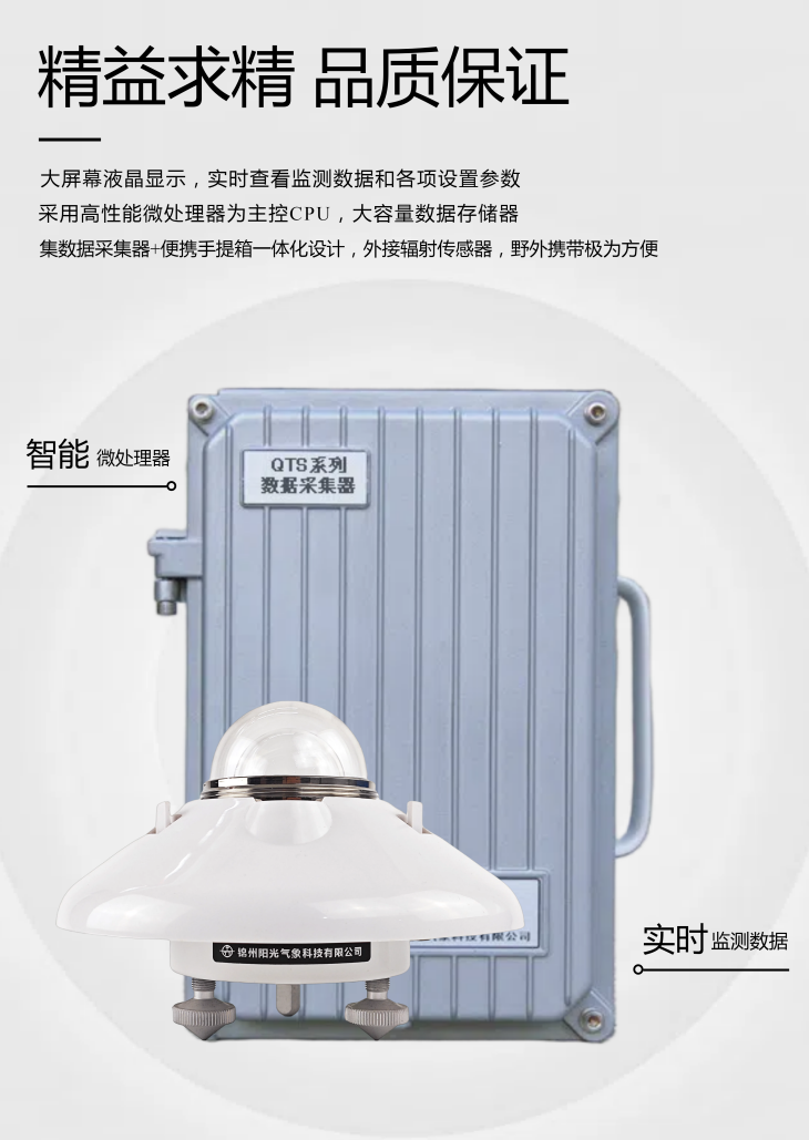 QTS-4全天候光輻數(shù)據(jù)自記儀是一款攜帶方便、操作簡(jiǎn)單的便攜式太陽(yáng)輻射記錄儀器。產(chǎn)品采用高性能微處理器為主控CPU和大容量數(shù)據(jù)存儲(chǔ)器,能對(duì)太陽(yáng)輻射進(jìn)行準(zhǔn)確測(cè)量、顯示并存儲(chǔ)。外接太陽(yáng)輻射傳感器即可對(duì)其進(jìn)行實(shí)時(shí)數(shù)據(jù)測(cè)量,同時(shí)還可以讀取太陽(yáng)輻射的間隔累計(jì)及日累計(jì)值。該套設(shè)備可在全天候室外環(huán)境下工作,工作時(shí)無(wú)需人工干預(yù),便攜式防水防震結(jié)構(gòu),低功耗環(huán)保節(jié)能模塊設(shè)計(jì),檢測(cè)精度高,交直流雙供電電源可選配,內(nèi)置大容量可充電鋰電池,電池可連續(xù)工作15天以上,具有停電保護(hù)功能,電量不足時(shí)自動(dòng)關(guān)機(jī)。另外可以選配專用氣象支架和太陽(yáng)能供電系統(tǒng),滿足戶外固定位置長(zhǎng)期無(wú)人值守觀測(cè)。使用配套的USB線纜和氣象站軟件即可將數(shù)據(jù)下載到電腦,方便用戶對(duì)氣象數(shù)據(jù)做進(jìn)一步處理分析。本儀器可廣泛應(yīng)用于氣象、環(huán)保、機(jī)場(chǎng)、農(nóng)林、水文、軍事、倉(cāng)儲(chǔ)、科學(xué)研究等領(lǐng)域。
