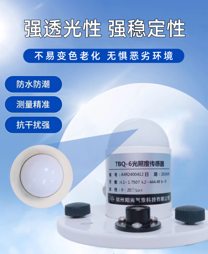 TBQ-6型光照度傳感器具有測量范圍寬、線形度好、防水性能好、使用方便、便于安裝、傳輸距離遠等特點,適用于各種場所。尤其適用于農(nóng)業(yè)大棚、城市照明等場所。