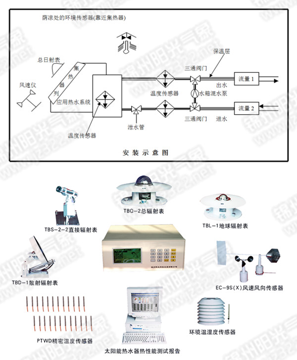 系統(tǒng)執(zhí)行國(guó)標(biāo)GB/T18708 ,GB/T19141,GB/T20095-2006太陽熱水系統(tǒng)性能評(píng)定規(guī)范等要求方法測(cè)試(熱性能:日有用得熱量,升溫性能,儲(chǔ)水箱保溫性能等指標(biāo))。